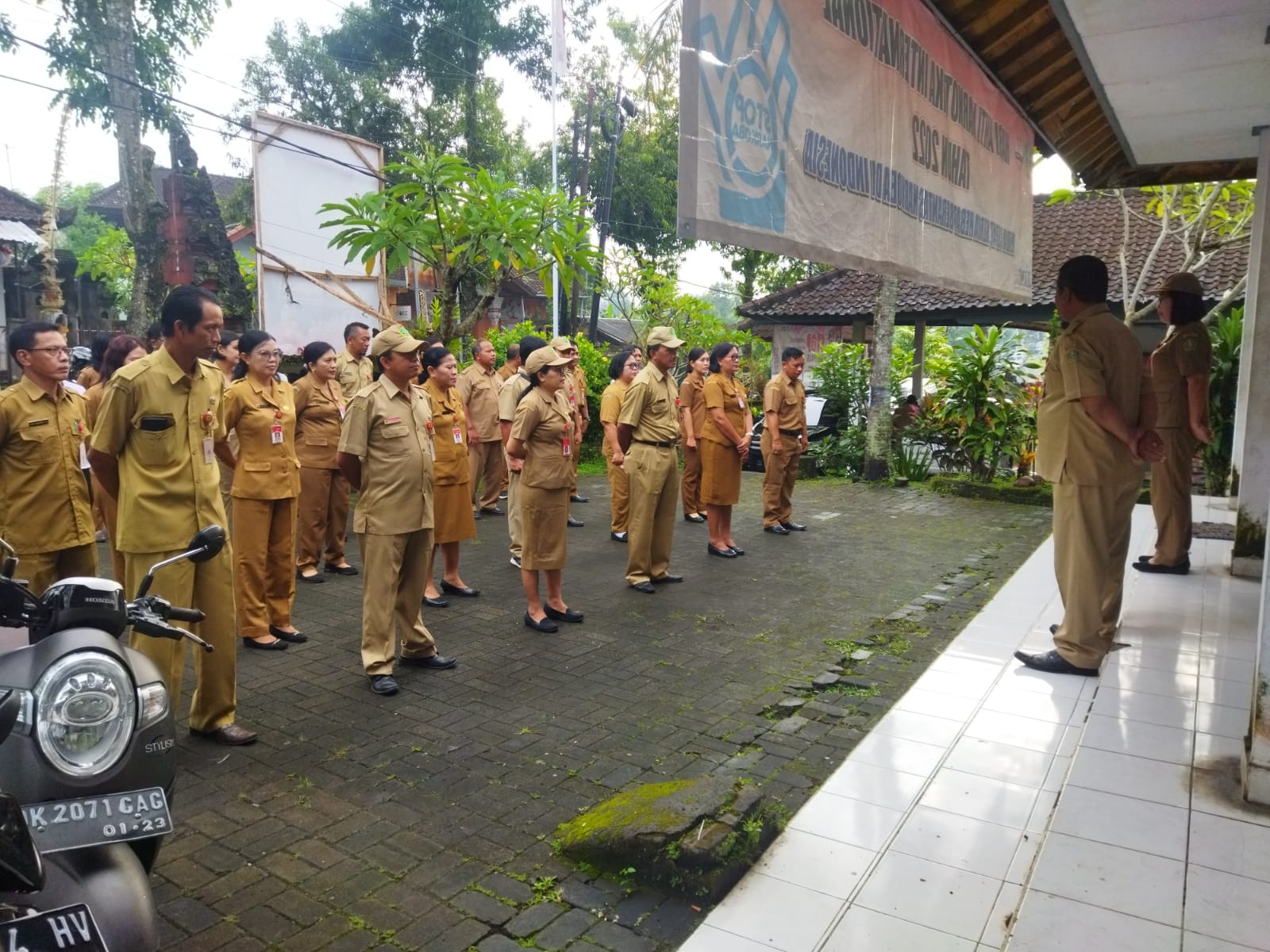Kepala Dinas Pemberdayaan masyarakat Desa melaksanakan Apel pagi di halaman kantor DPMD bersama seluruh pegawai guna meningkatkan semangat dan motivasi seluruh pegawai yang ada di Dinas Pemberdayaan masyarakat Desa