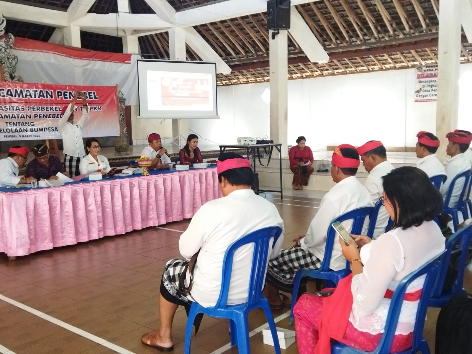 Kepala Dinas Pemberdayaan masyarakat dan Desa bersama bidang Pembangunan dan pemberdayaan ekonomi masyarakat melaksanakan kegiatan Bintek pengelolaan Bumdesma di kecamatan Penebel