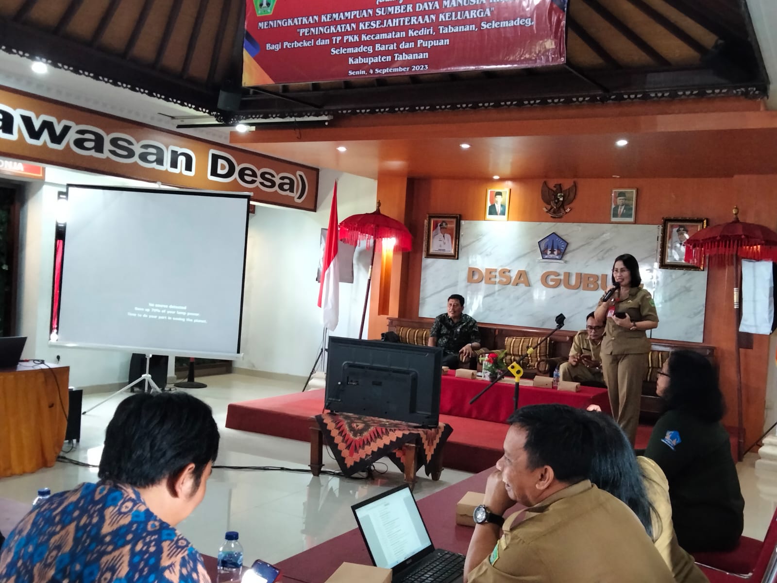 Kepala Dinas Pemberdayaan Masyarakat dan Desa memberikan bimbingan teknis peningkatan kemampuan SDM khususnya peningkatan kesejahteraan keluarga di ruang rapat kantor desa Gubug