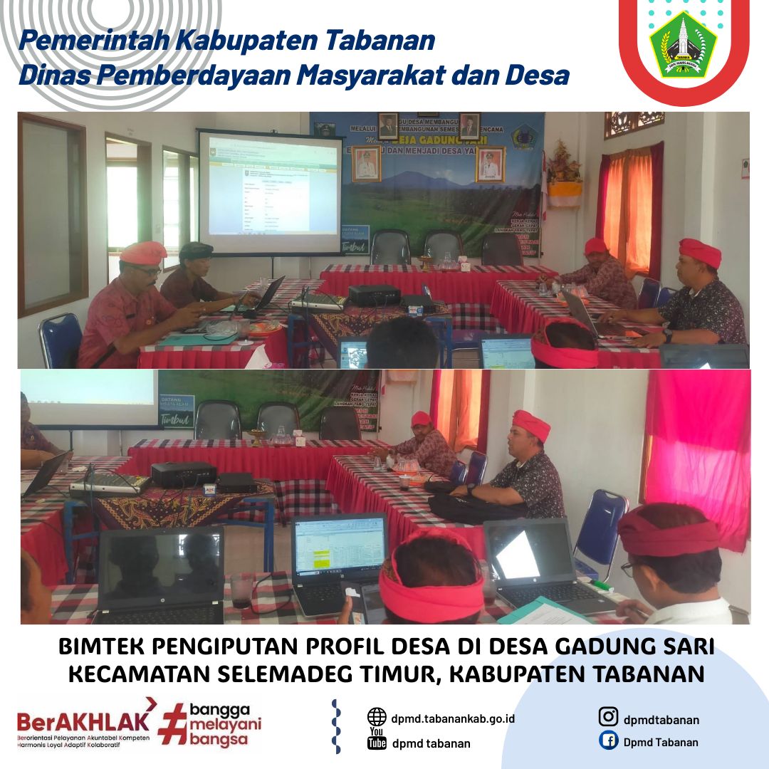 DPMD TABANAN – Kamis, 12 Desember 2024 Bintek pengiputan profil desa di Desa Gadung Sari, Selemadeg Timur, Tabanan Navigasi pos Pos Sebelumnya FGD Kajian Pembentukan Kawasan Desa Buah Kabupaten Tabanan