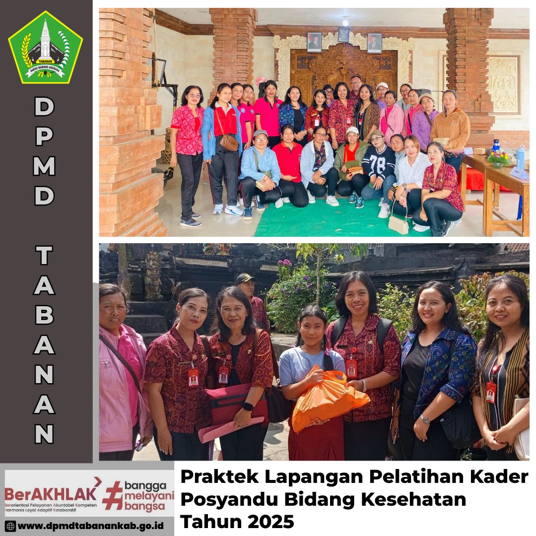 Kegiatan Praktek Lapangan Pelatihan Kader Posyandu Bidang Kesehatan di Banjar Batunya, Desa Batunya, Baturiti yang dihadiri Dinas Kesehatan Provinsi Bali, DPMD, Dinkes Kab.Tabanan serta Kader Posyandu dimana kegiatan ini diawali dengan penyampaian Materi, Praktek dan Kunjungan Rumah