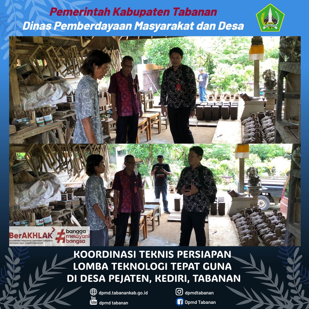DPMD TABANAN – Selasa, 21 Januari 2025 Koordinasi teknis persiapan lomba teknologi tepat guna di Desa Pejaten, Kecamatan Kediri, Kabupaten Tabanan Navigasi pos Rapat bersama dengan para forum perbekel Tahun 2025 Kunjungan kerja program desa presisi Kabupaten Paser, Provinsi Kalimantan Timur.