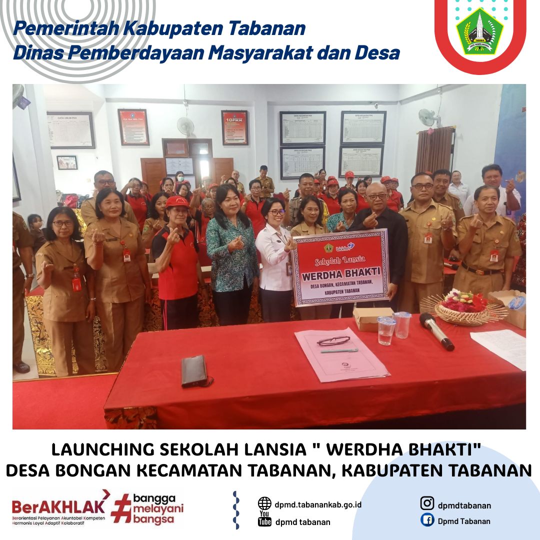Launching Sekolah Lansia ” Werdha Bhakti” Desa Bongan Kecamatan Tabanan di Ruang Rapat Kantor Desa Bongan yang dihadiri oleh Plt.Kepala BKKBN Provinsi Bali dan OPD terkait.