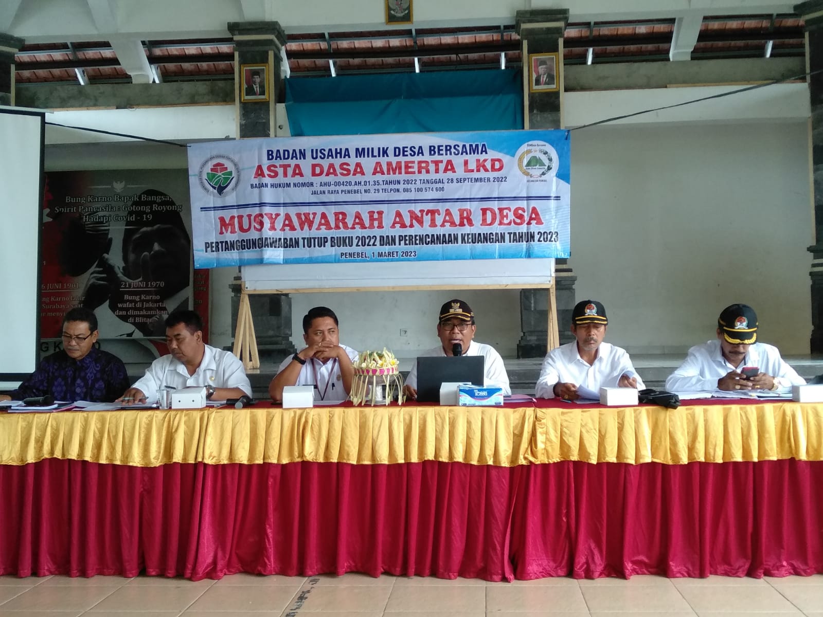 Dinas Pemberdayaan masyarakat dan Desa dalam hal ini diwakili oleh Sekretaris Dinas, menghadiri Musyawarah Antar Desa (MAD) tutup buku tahun 2022 dan perencanaan keuangan 2023 untuk yang di laksanakan oleh kecamatan Penebel bertempat di wantilan desa Buruan