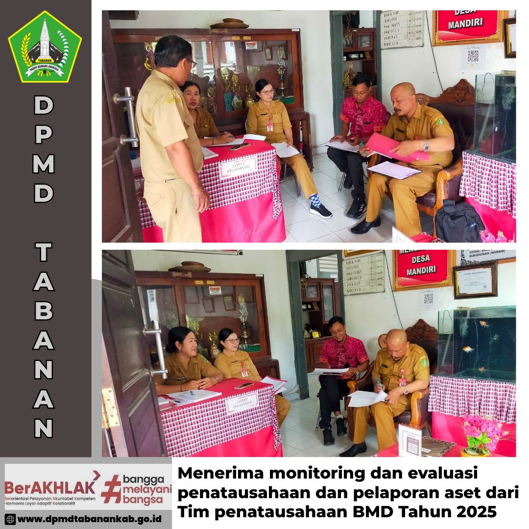 DPMD TABANAN – Senin, 21 Juli 2025 Menerima monitoring dan evaluasi atas penatausahaan dan pelaporan aset dari tim penatausahaan BMD Tahun 2025 di Kantor DPMD Tabanan Navigasi pos Proses Penilaian Lomba memasak dalam rangka “Bulan Bung Karno” Tahun 2025, Kabupaten Tabanan Kegiatan posting perubahan perkel penjabara se-Kecamatan Kediri di kantor Desa Kediri, Tabanan