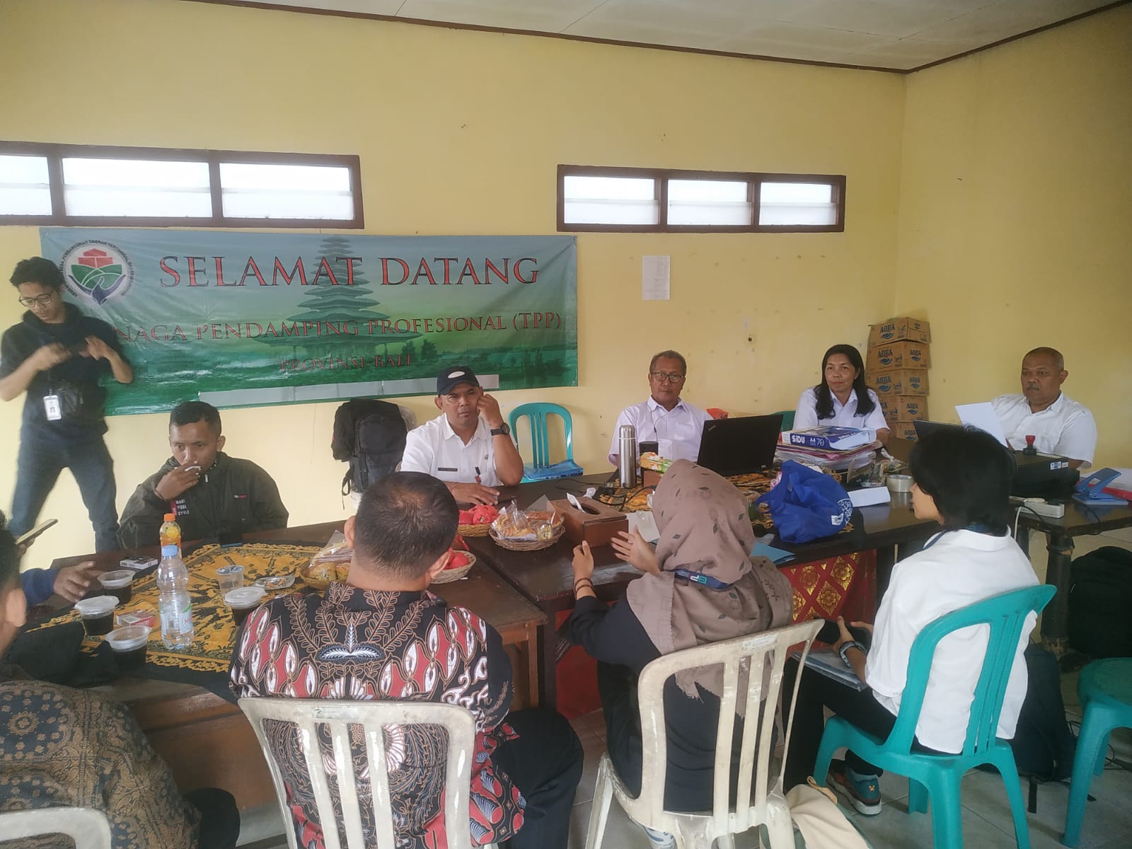 Dinas Pemberdayaan Masyarakat dan Desa menerima tamu dari Pusdaing terkait dengan pelatihan desa Bajra, desa Berembeng dan desa Dajan Peken