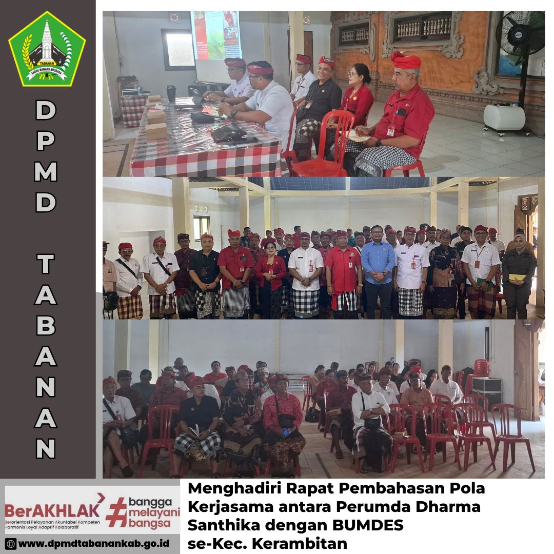 Menghadiri Rapat Pembahasan Pola Kerjasama antara Perumda Dharma Santhika dengan BUMDES se-Kec. Kerambitan di Aula Rapat Kecamatan Kerambitan