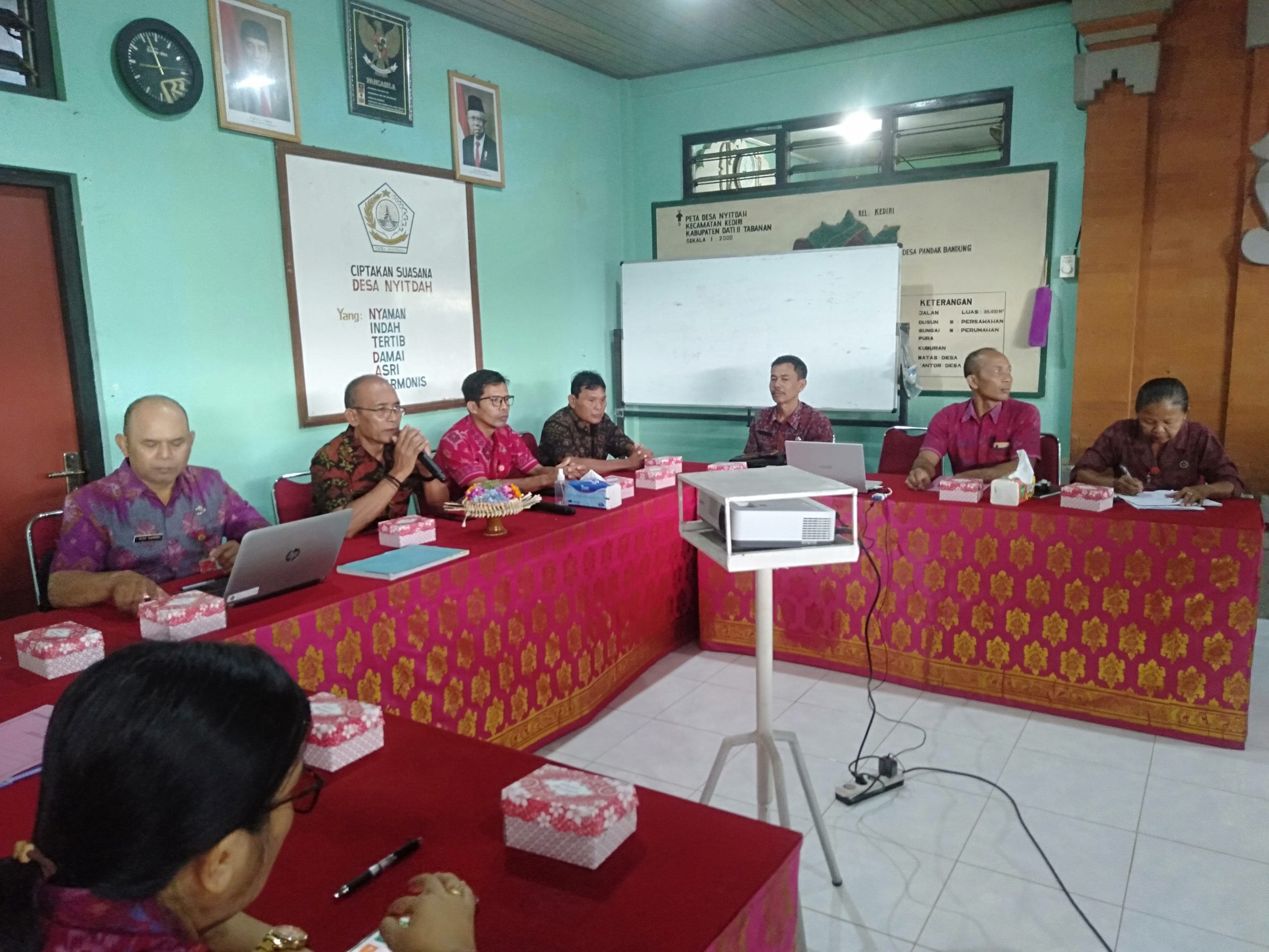 Kepala Dinas Pemberdayaan masyarakat dan Desa bersama Tim lomba Desa memberikan pembinaan kepada desa Nyitdah yang mengikuti lomba Desa tingkat Kabupaten tahun 2023 untuk mewakili kecamatan Kediri yang bertempat di kantor desa