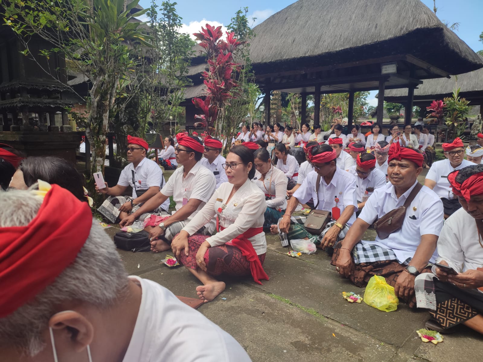Kepala Dinas Pemberdayaan Masyarakat dan Desa mengajak 8 staf mengikuti kegiatan Persembahyangan bersama jajaran SKPD kabupaten Tabanan di pura Batukaru kecamatan Penebel
