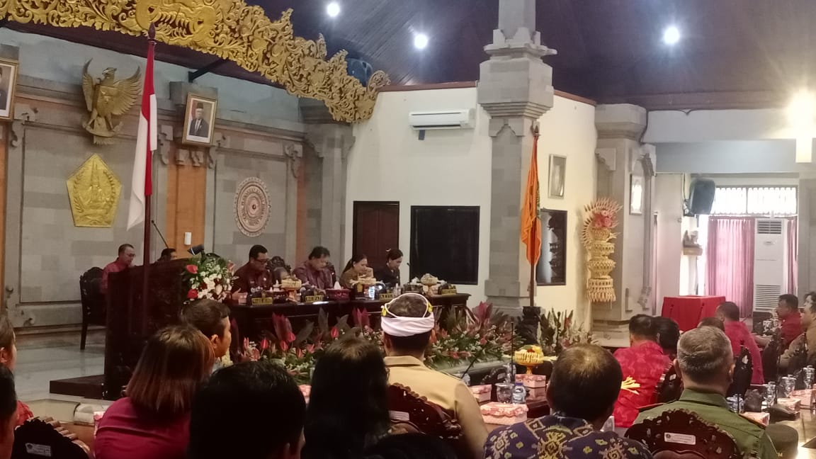 Sekretaris Dinas Pemberdayaan Masyarakat dan Desa mengikuti rapat Paripurna penyampaian Laporan Badan Anggaran Pansus I dan Pansus II di gedung DPRD kabupaten Tabanan