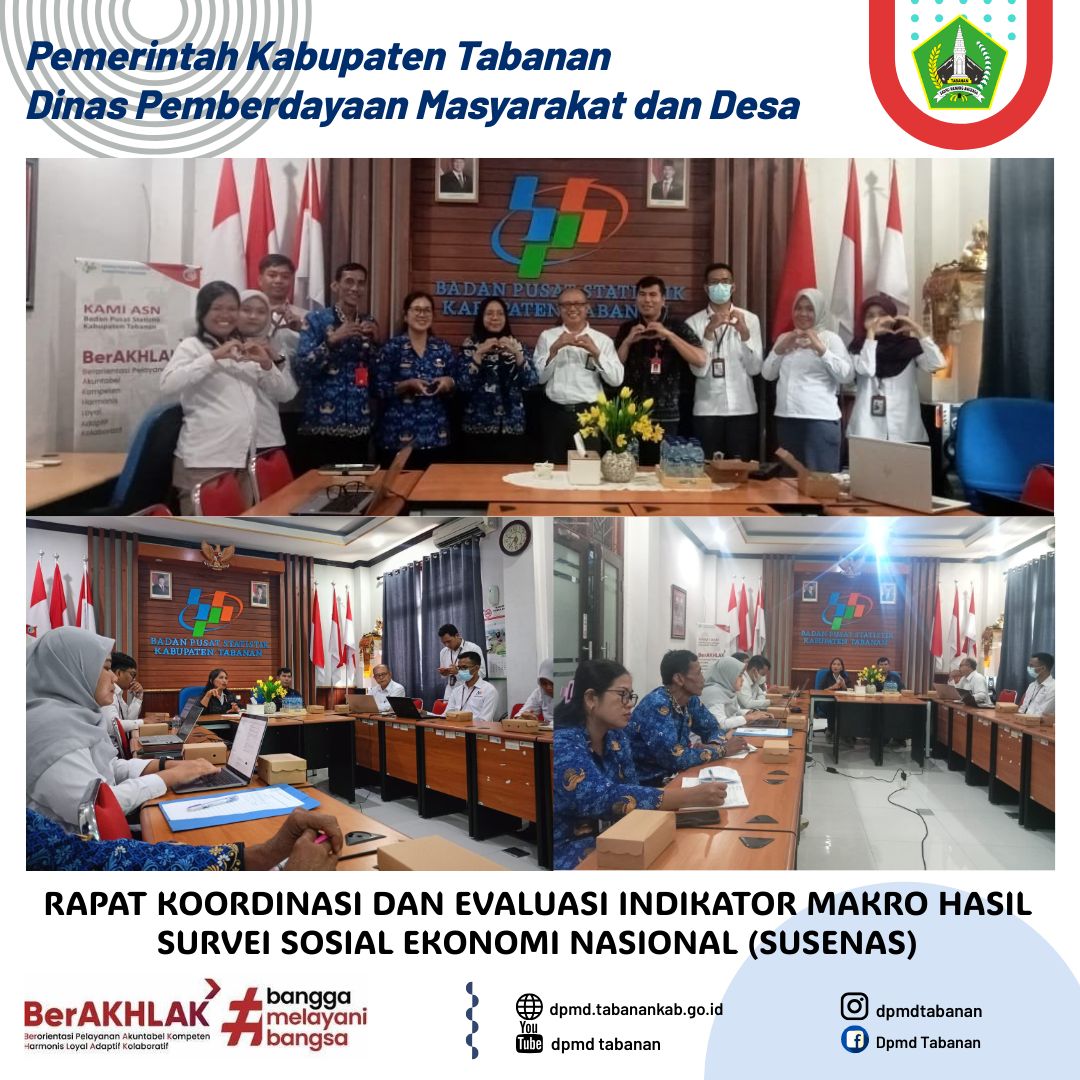 DPMD TABANAN – Rabu, 17 Desember 2024 Rapat koordinasi dan Evaluasi Indikator Makro Hasil Survei Sosial Ekonomi Nasional (Susenas) dan Survei sosial ekonomi nasional akan dilaksanakan di tahun 2026 mendatang. Navigasi pos Rapat pembahasan laporan akhir penyusunan kajian identifikasi dan deskripsi hak kekayaan intelektual kepemilikan komunal di KabupatenTabanan di Ruang Rapat BRIDA Tabanan. Pelatihan Konfensi Hak Anak