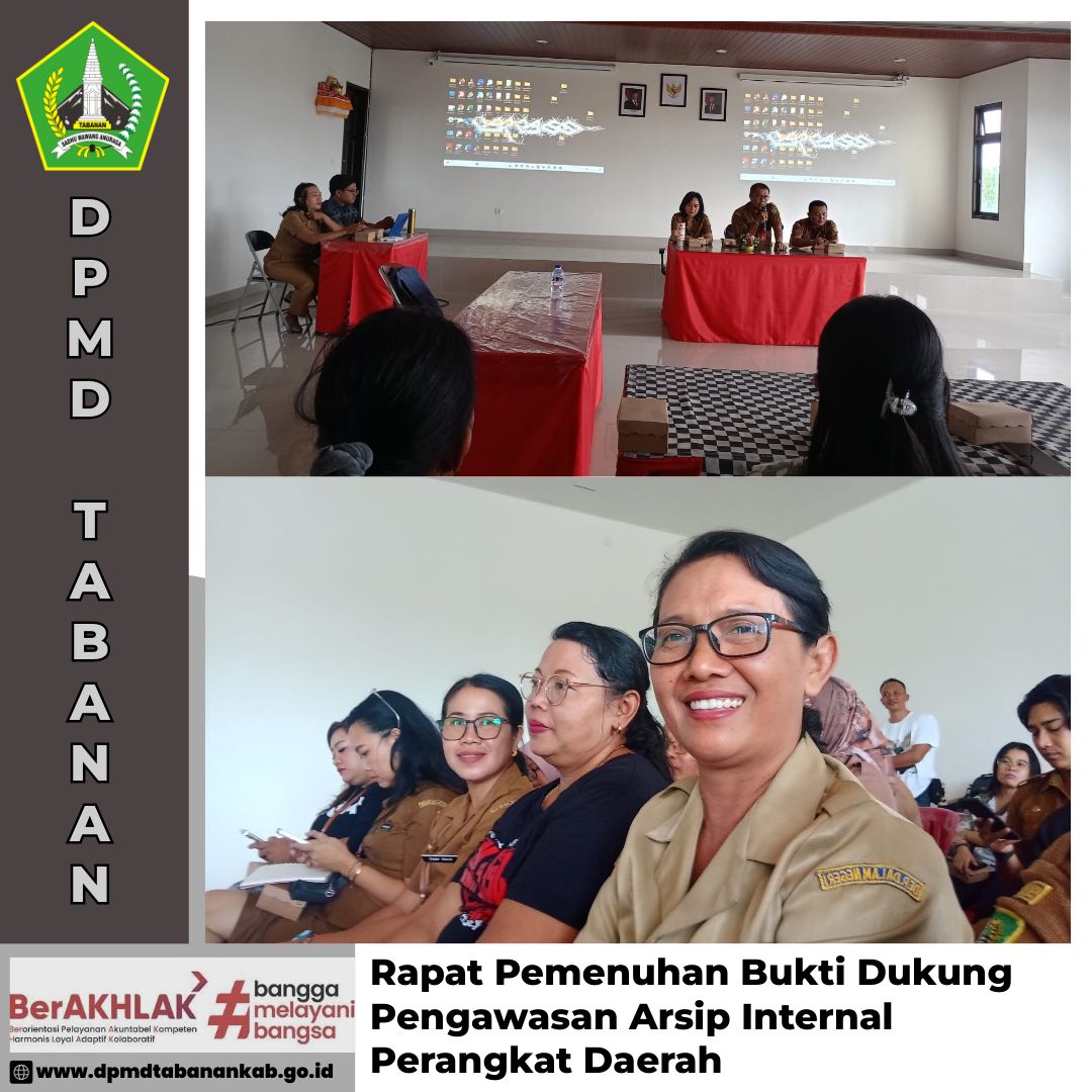 DPMD TABANAN – Senin, 30 Juni 2025 Rapat pemenuhan bukti dukung pengawasan arsip internal perangkat daerah yang dilaksanakan di Ruang Rapat Brida Kabupaten Tabanan Navigasi pos Peningkatan Kapasitas Badan Permusyawaratan Desa (BPD) se-Kec. Selemadeg, Selemadeg Barat, Selemadeg Timur dan Pupuan Konsultasi terkait dengan APBDes perubahan pada desa jegu di BPKP Perwakilan Provinsi Bali