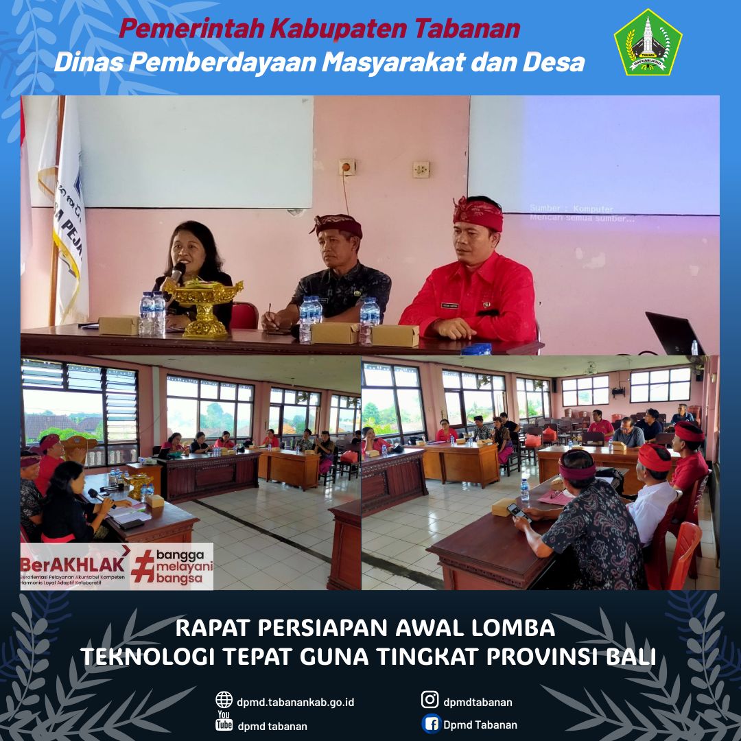 Rapat Persiapan Awal Lomba Teknologi Tepat Guna tingkat Provinsi Bali yang bertempat di Ruang Rapat Kantor Desa Pejaten, Kediri yang dihadiri oleh Tim Kabupaten, Kasi PMD Kec.Kediri, Perbekel Desa Pejaten, Pendamping Desa, Pendamping lokal desa, Bapak I Made Danu sebagai peserta lomba TTG 2025. Adapun pembahasannya terkait :