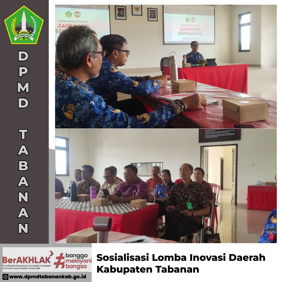 DPMD TABANAN – Selasa, 17 Juni 2025 Sosialisasi lomba inovasi daerah Kabupaten Tabanan di Ruang Rapat BRIDA Kab. Tabanan Navigasi pos Monev pengelolaan Aset Desa se Kecamatan Selemadeg Barat di Kantor camat Selemadeg Barat, Tabanan Sosialisasi pengisian LKE & Pemenuhan Bukti Dukung Evaluasi Kelembagaan sesuai Permendagri 99 Tahun 2018 di ruang rapat jayaning singasana