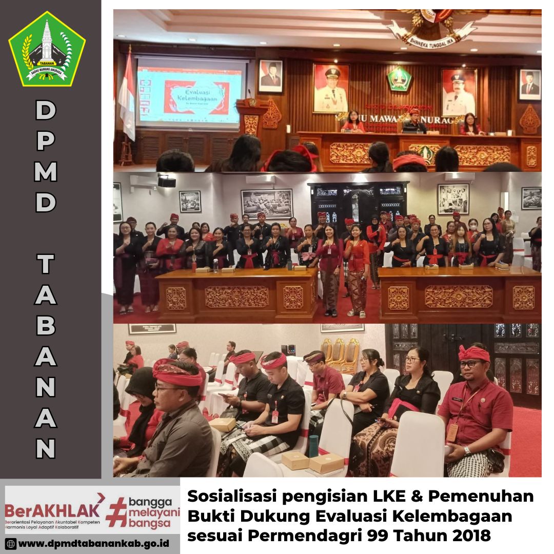 Sosialisasi pengisian LKE & Pemenuhan Bukti Dukung Evaluasi Kelembagaan sesuai Permendagri 99 Tahun 2018 di ruang rapat jayaning singasana